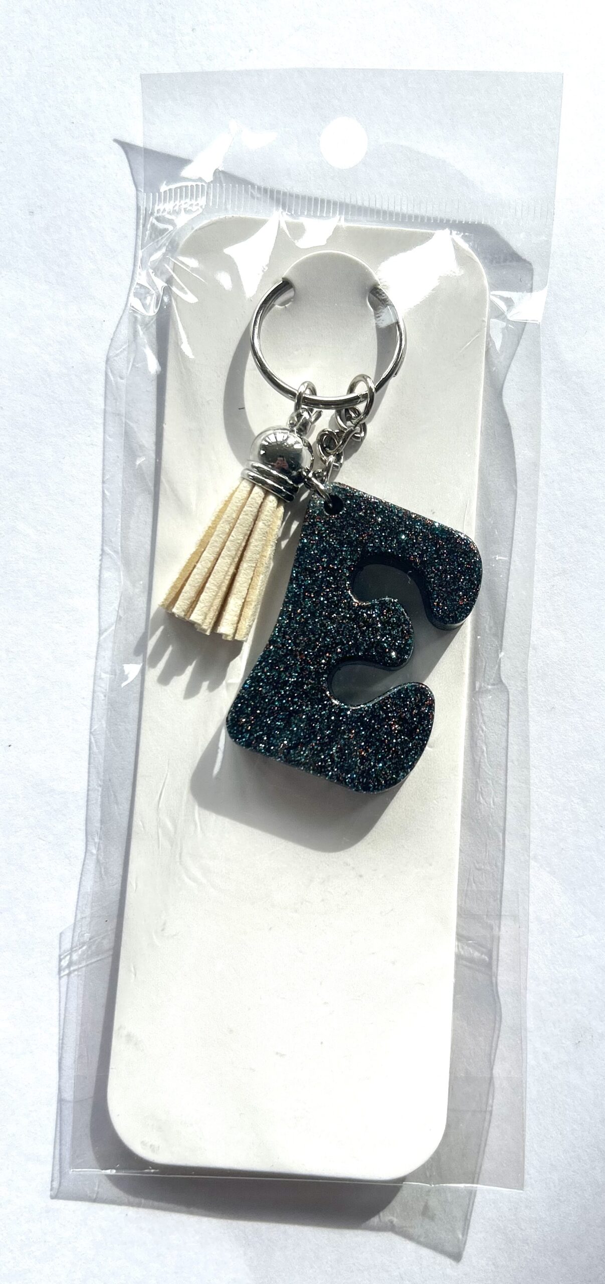 Initial E Keyring Black Sparkle